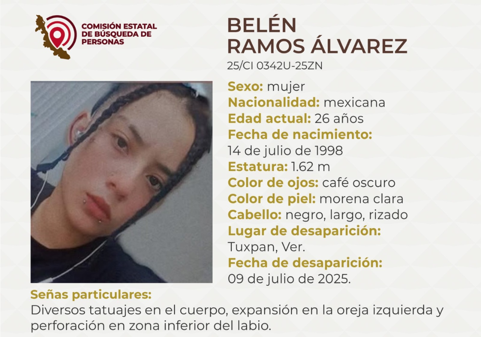 El tercer cuerpo identificado es el de la tuxpeña, Belén Ramos, de 26 años de edad desaparecida el pasado 9 de julio.