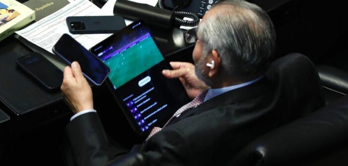 Durante su intervención en el Senado, el secretario destacó los avances sobre la economía de México, sin embargo, el morenista Adán Augusto fue captado desde arriba, observando una tablet donde se percibía el partido de la Champions League.