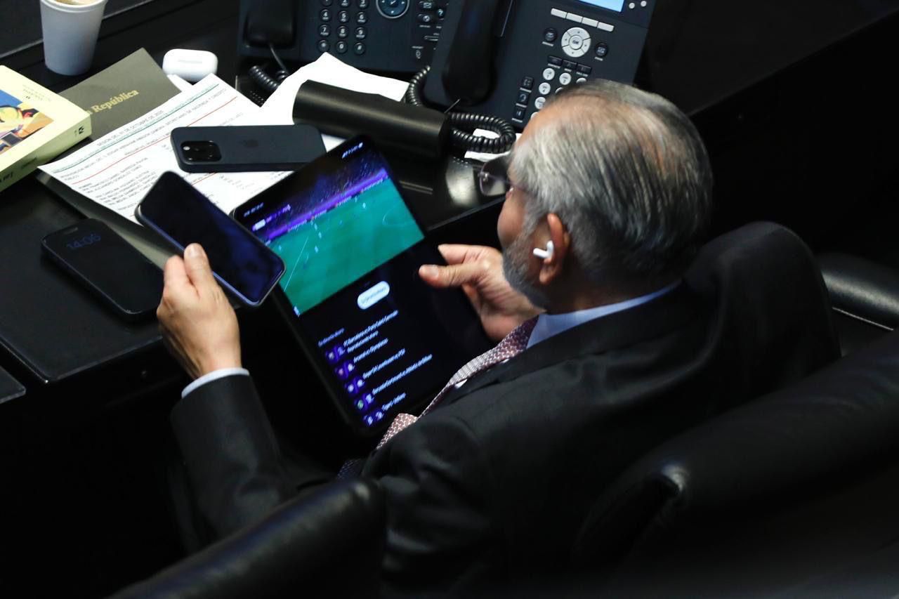 El coordinador de los senadores de Morena, Adán Augusto López, fue captado siguiendo el partido de la Champions League entre el Barcelona y el Paris Saint-Germain durante la comparecencia del secretario de Hacienda y Crédito Público, Édgar Amador, ante el pleno del Senado.
