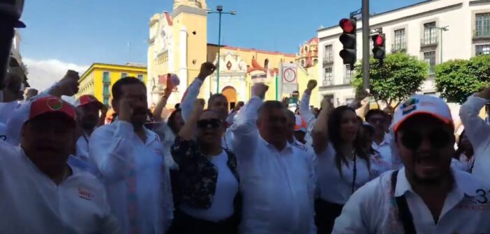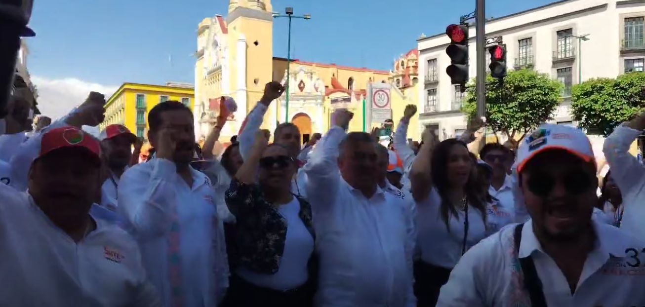 La consigna “¡Fuera Tello!” fue coreada por miles de voces, tanto en la marcha previa por el centro de Xalapa como en el acto central. “¡Fuera Tello, compañeros!”, respondió Covarrubias desde el micrófono.
