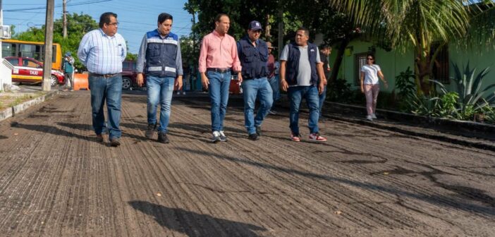 El Presidente Municipal de Boca del Río, Juan Manuel Unánue Abascal, recorrió la obra de pavimentación con concreto asfáltico de la calle Irene Bourel, en la colonia Primero de Mayo Norte.