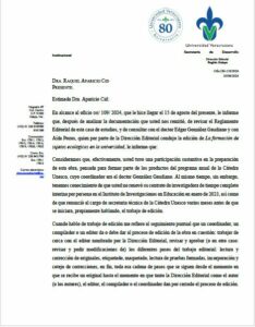 Hasta el oficio de fecha 30 de agosto de 2024, firmado por Agustín del Moral Tejeda, Director Editorial de la Universidad Veracruzana, en el que responde que (…) “efectivamente, usted tuvo una participación sustantiva en la preparación de esta obra, (…) cuyo coordinador era el doctor González Gaudiano”.