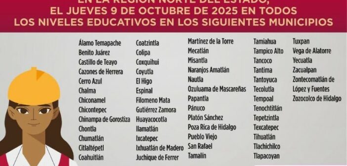 En seguimiento a las acciones preventivas implementadas ante el temporal lluvioso, el Comité Estatal de Emergencias, en coordinación con la Secretaría de Educación, determinó mantener la suspensión de clases y labores de personal docente, así como administrativo de centros escolares, este jueves 9 de octubre en 58 municipios de la zona norte: