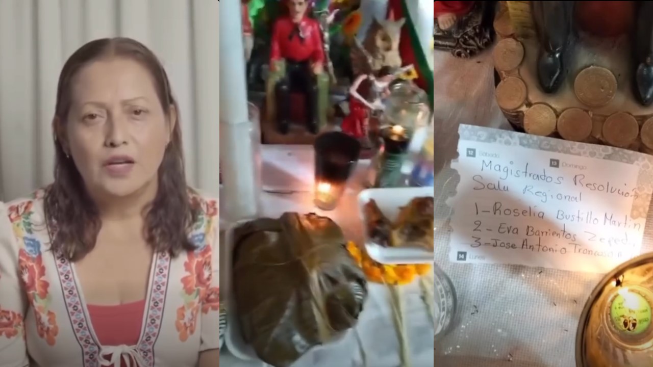 El altar del gobierno municipal incluyó una pequeña pero visible efigie de Jesús Malverde, figura venerada en sectores ligados al narcotráfico, aunque no reconocida por la Iglesia Católica. Lo más llamativo fue la inclusión de los nombres de los magistrados de la Sala Regional Xalapa del Tribunal Electoral del Poder Judicial de la Federación (TEPJF): Eva Barrientos Zepeda, Roselia Bustillo Marín y José Antonio Troncoso Ávila.