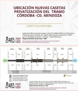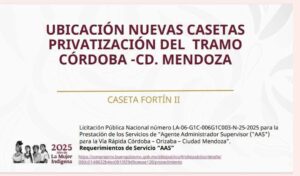El gobierno federal encabezado por Claudia Sheinbaum lanzó a través del Fondo Nacional de Infraestructura (FONADIN) la licitación nacional para la construcción de dos nuevas casetas de peaje en la autopista Córdoba-Orizaba-Cd. Mendoza, como parte de un proyecto de reordenamiento vial impulsado por la Secretaría de Infraestructura, Comunicaciones y Transportes (SICT).