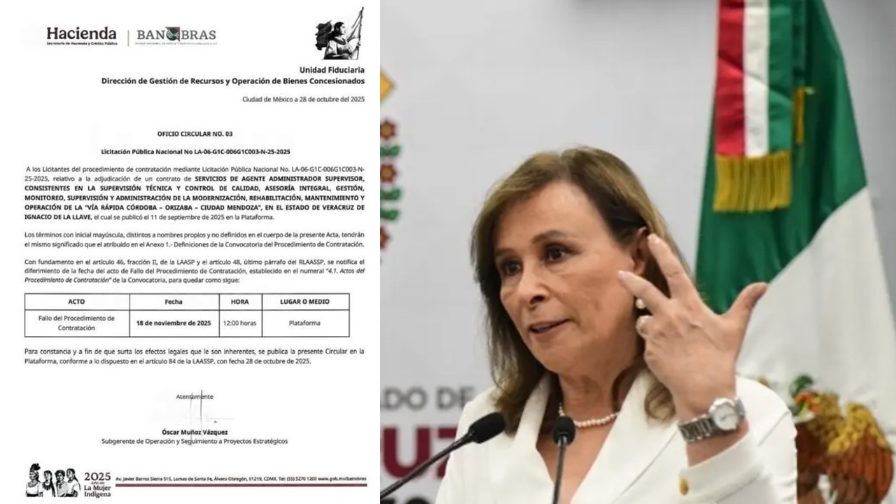 De acuerdo con la Circular No. 03 emitida por Banobras el pasado 28 de octubre, el fallo de la licitación se dará a conocer el 18 de noviembre a las 12:00 horas, a través de la plataforma oficial del organismo. Casi al mismo tiempo, Rocío Nahle sostenía que no habría nuevas casetas de peaje en esa autopista, a pesar de estar fuera de su ámbito de competencia.
