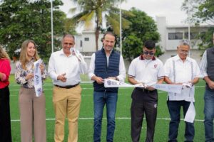 “Se beneficia a la institución, se beneficia en primer lugar a los jóvenes para que aquí puedan llevar a cabo sus actividades deportivas, pero también se beneficia a los maestros”, expresó el alcalde, recordando además que también se apoyó a dicho plantel con la rehabilitación de su domo.