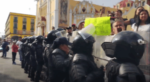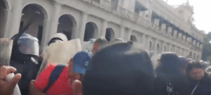 De acuerdo con reportes, más de una docena de granaderos, mientras chocaban sus macanas contra sus escudos y amagaban con golpear, obligaron a los extrabajadores a replegarse hacia la Plaza Lerdo, donde continuaron su protesta de manera más limitada.