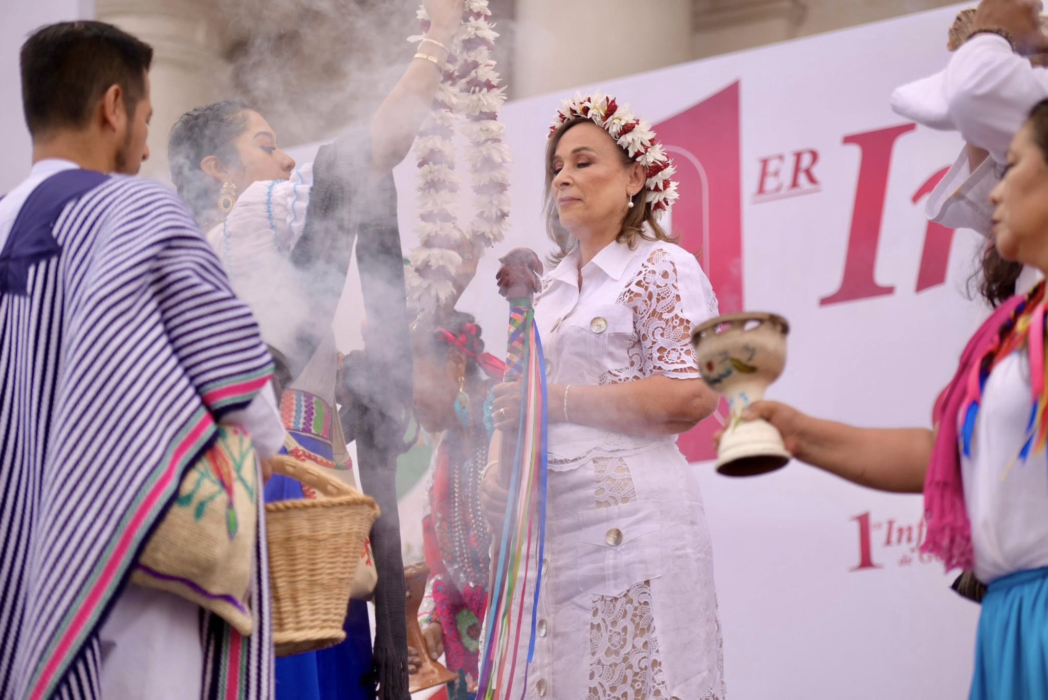 En su discurso, luego de someterse a un ritual tradicional de «purificación», la gobernadora subrayó la necesidad de consolidar la “transformación” en Veracruz, destacando avances en deuda pública y programas sociales.