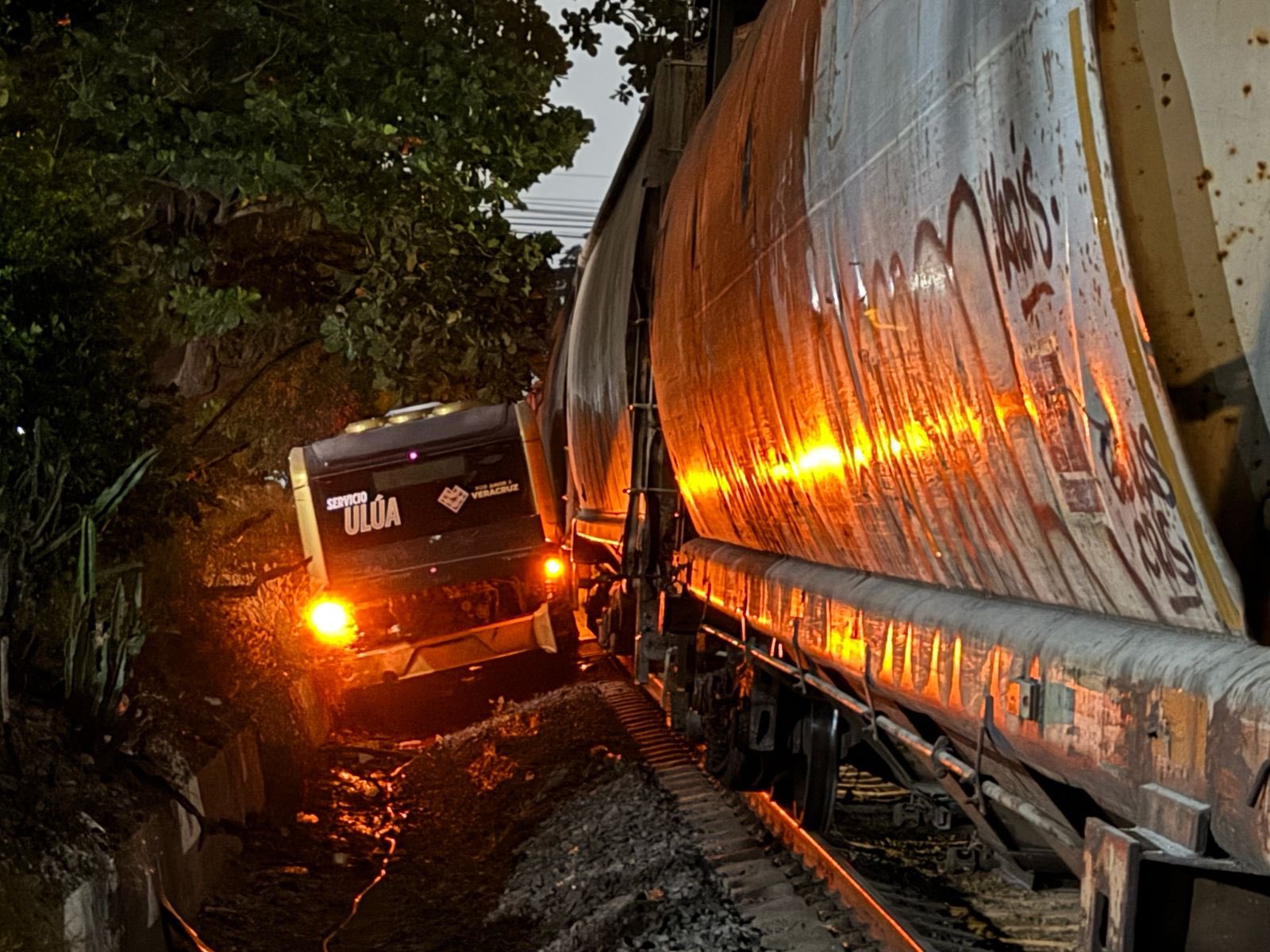 En las primeras horas de este domingo, un autobús de la Línea Ulúa con más de 20 pasajeros trató de ganar el paso al tren en la comunidad de Tejería en la calle que desemboca a la carretera federal Veracruz-Xalapa y fue arrastrado por el mismo tren de carga.