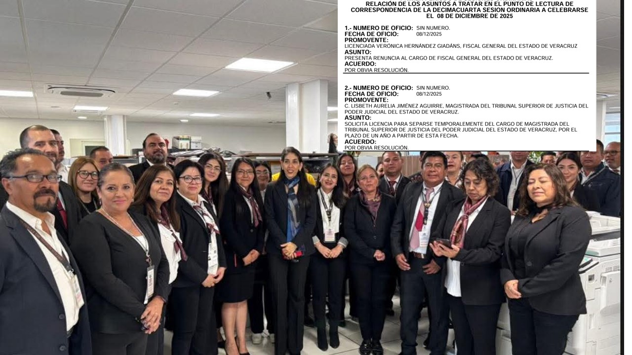 Por la mañana de este lunes 8 de diciembre, ya estaba listada en la correspondencia de asuntos a tratar en la sesión de la LXVII Legislatura del Estado de Veracruz la “renuncia” de Hernández Giadáns, junto con la solicitud de licencia de Lisbeth Aurelia Jiménez como magistrada del Tribunal Superior de Justicia y quien más tarde fue “propuesta” por la gobernadora Nahle para ocupar la Fiscalía por su “experiencia jurídica”.