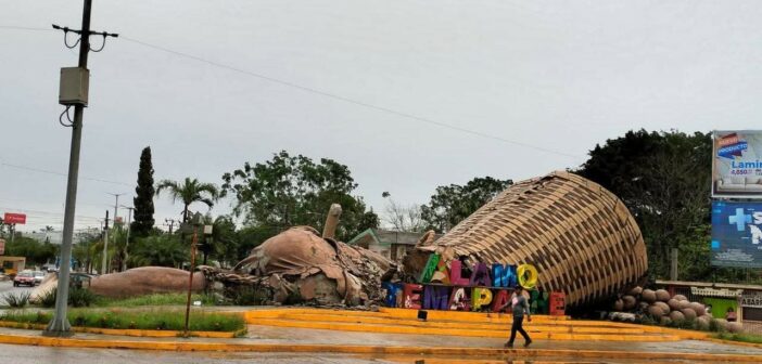 Esta mañana sorpresivamente se desplomó el emblemático monumento “Colotero”, símbolo de fortaleza y una representación homenaje a los jornaleros de Álamo, Temapache, Veracruz.