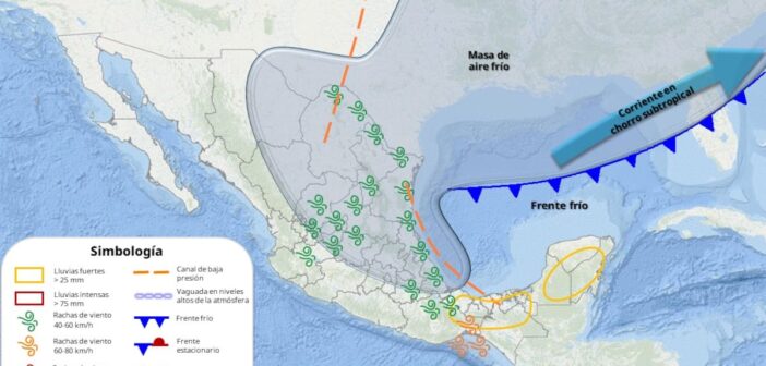 El Servicio Meteorológico Nacional (SMN) informó que el cierre de la semana y el inicio del fin de semana estarán marcados por lluvias en el oriente, sureste y la península de Yucatán, rachas fuertes de viento en zonas del Golfo de México y el istmo de Tehuantepec, así como un contraste térmico importante: mañanas y noches frías a muy frías en el norte y el centro del país, y ambiente cálido a muy caluroso por la tarde en regiones del Pacífico.