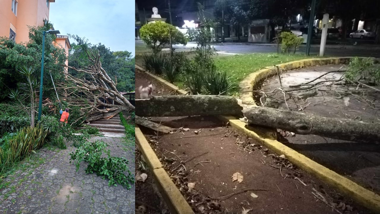 Protección Civil de Xalapa atendió llamadas de la población relacionadas con la caída de ramas y árboles en las colonias Lomas de San Roque, El Mirador, Indeco Ánimas, Unidad Habitacional Fovissste, Acueducto, Progreso Macuiltépetl, María Esther y Laureles.
