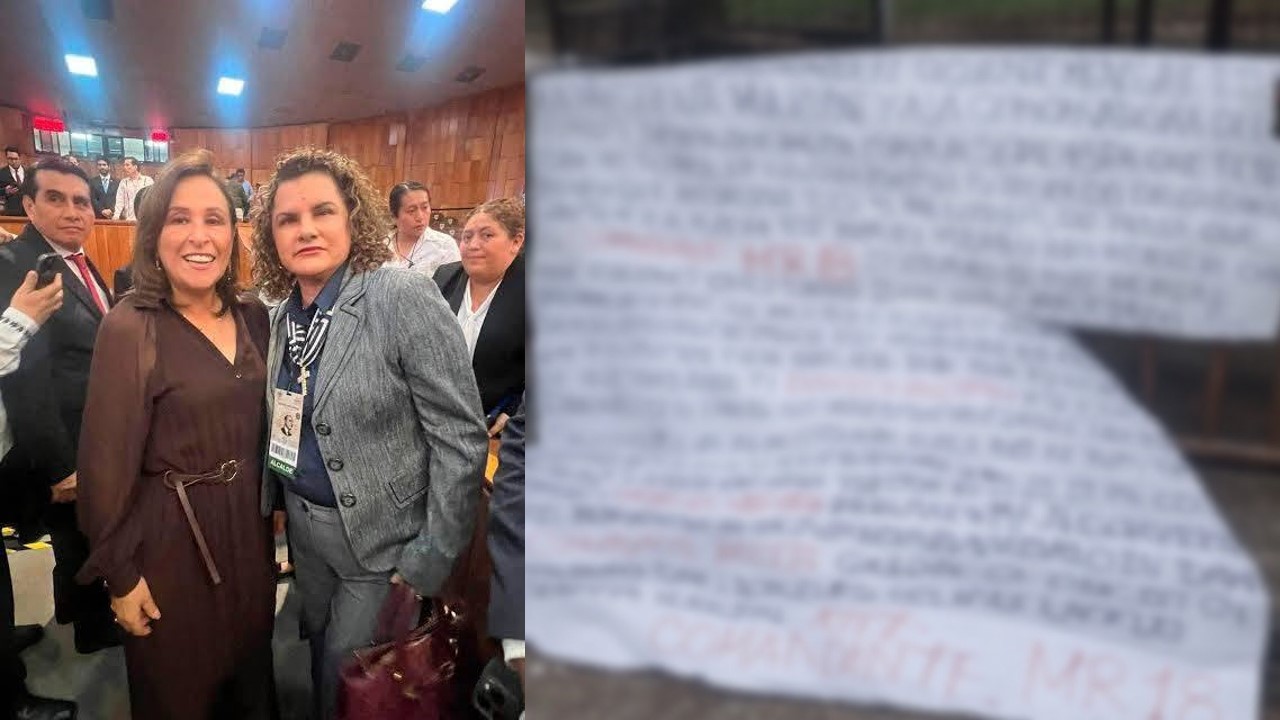 Se trata de un mensaje que apareció colgado en las inmediaciones de un jardín de niños, y en este se incluyen señalamientos directos. «Tienen que regresar los cinco millones que dimos por la plaza», se lee en la manta.