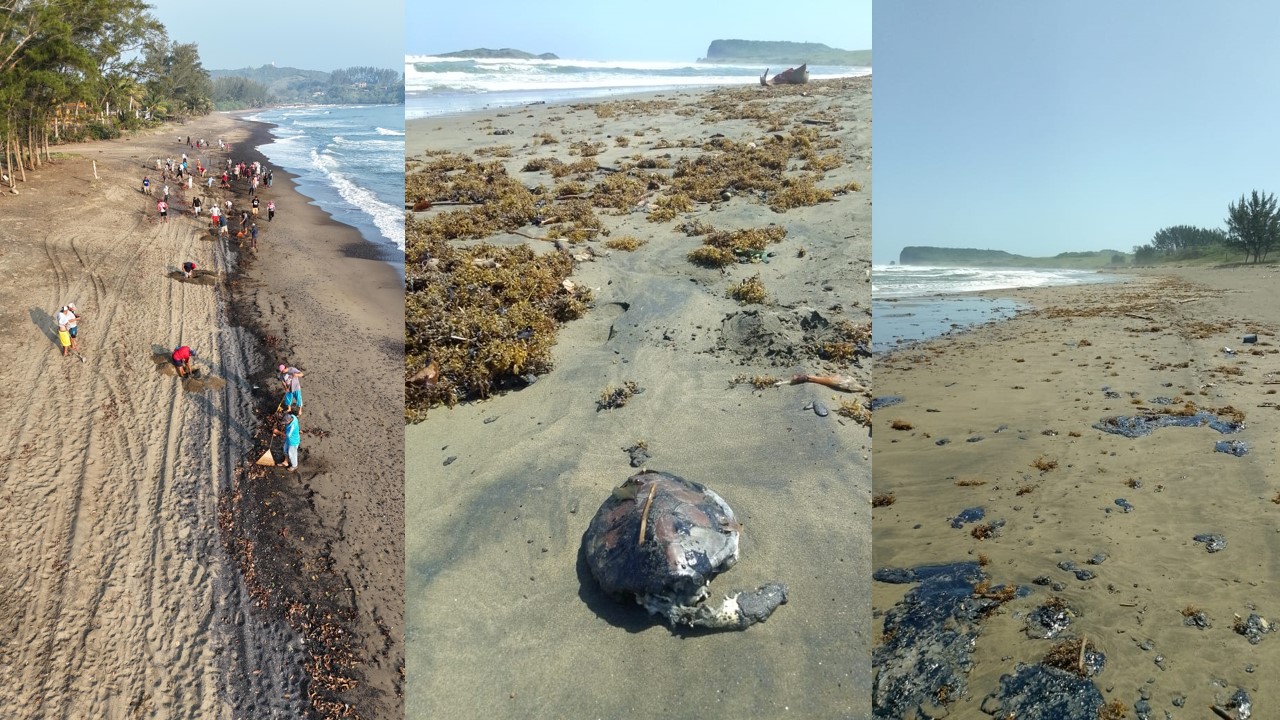 42 localidades afectadas en 13 municipios y muerte de delfines, tortugas marinas y aves, saldo del derrame de crudo en el litoral de Veracruz; desde Cumbre Tajín, Nahle dice que no sabe de animales muertos: “sobre las tortugas, pues no sé si sean siete o sea una; yo espero el reporte”