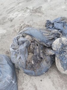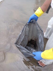Les mostraron además bolsas repletas del hidrocarburo, abandonadas desde principios de marzo, para desmentir la versión oficial que aseguraba que se trataba únicamente de sargazo.