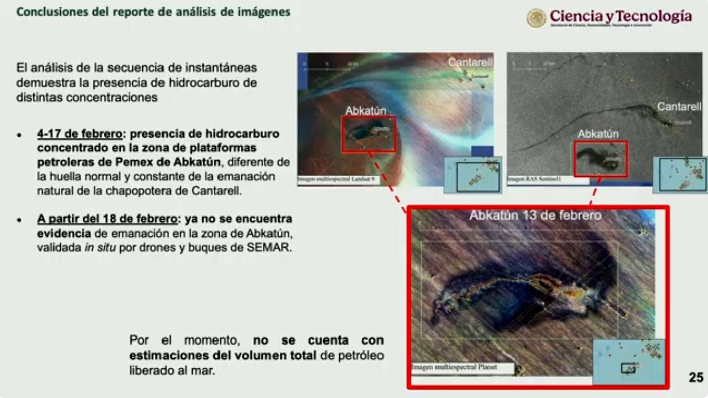 El grupo científico interinstitucional, tras analizar más de 70 imágenes satelitales y modelos de deriva, identificó el origen del derrame en la zona Abkatun-Cantarell, en febrero pasado, tal como lo habían denunciado organizaciones ambientalistas.