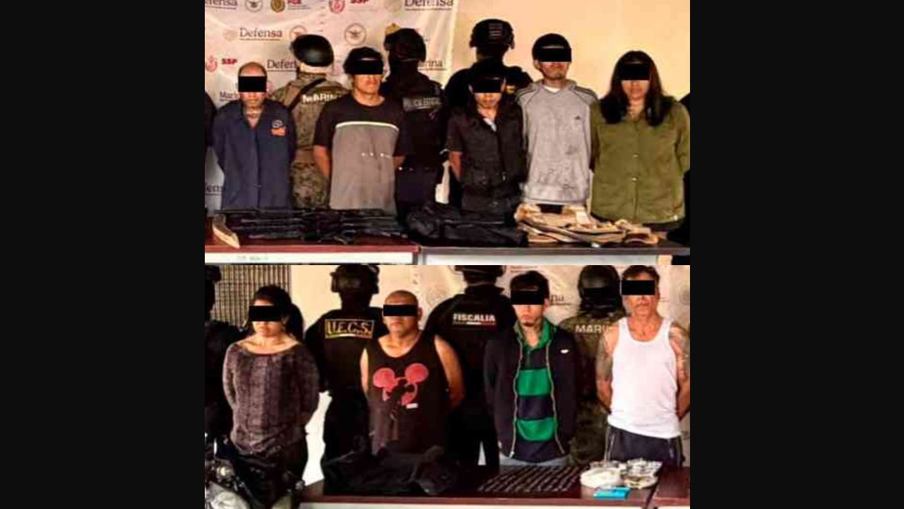 El resultado del operativo fue de nueve detenidos, así como el aseguramiento de armas largas y cortas, chalecos antibalas, radios de comunicación y dosis de droga listas para distribución.